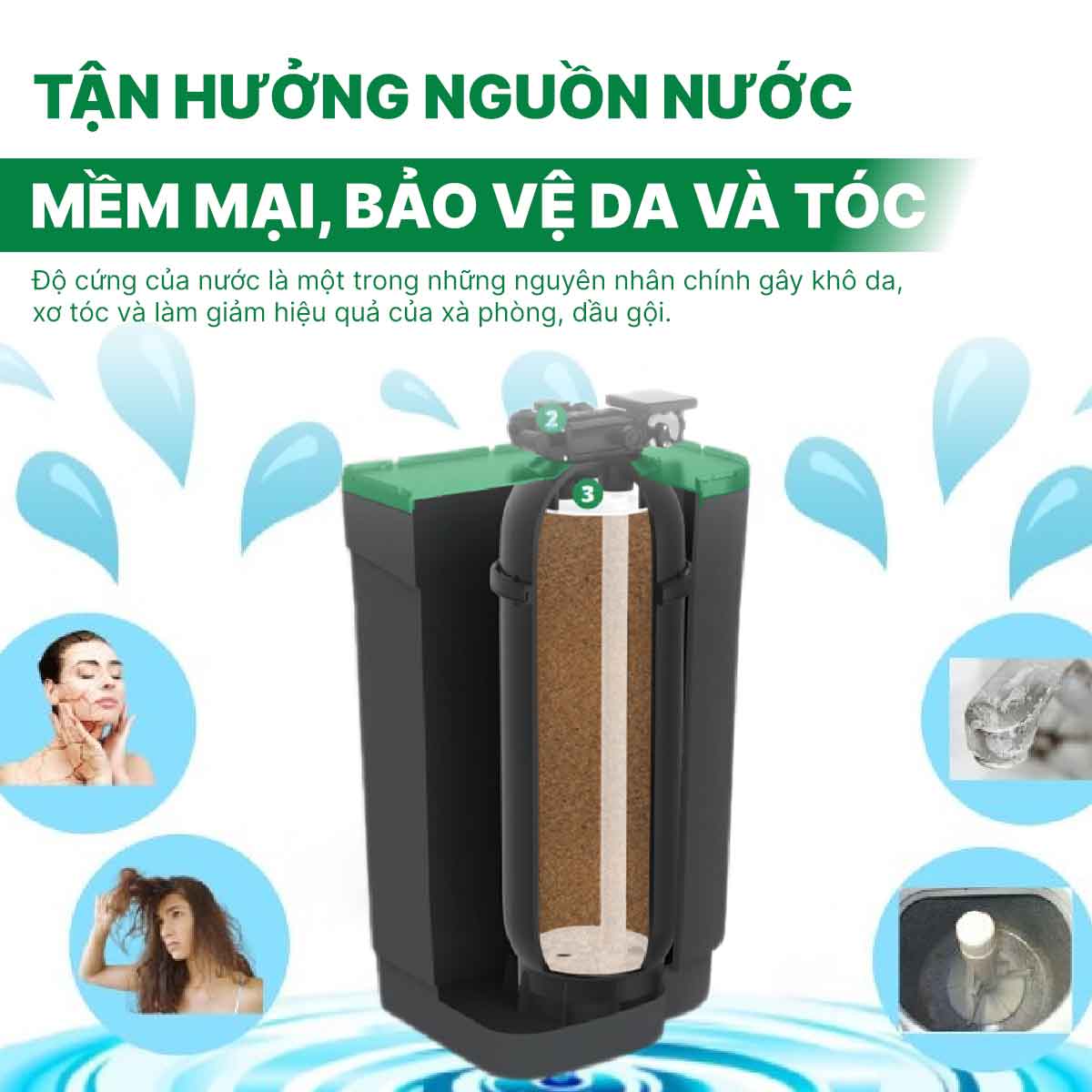Tận hưởng nguồn nước mềm mại, bảo vệ da và tóc