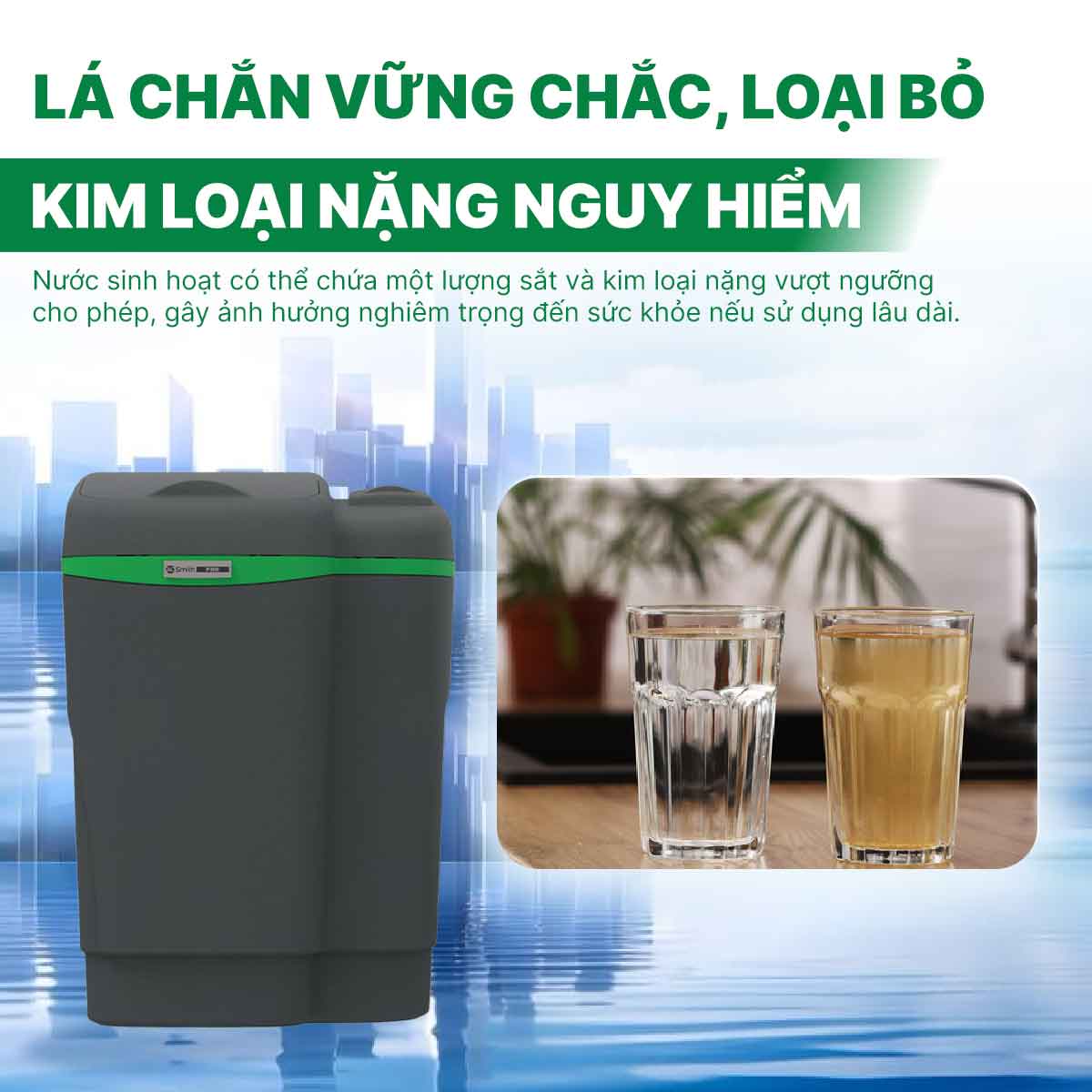Nhờ vậy, nguồn nước sử dụng trong sinh hoạt không chỉ an toàn hơn mà còn trong lành, dễ chịu hơn. Việc loại bỏ triệt để các kim loại nặng giúp bảo vệ các cơ quan nội tạng của bạn, giảm nguy cơ mắc các bệnh về đường tiêu hóa và các bệnh lý nguy hiểm khác. Điều này đặc biệt quan trọng đối với các gia đình có trẻ nhỏ và người lớn tuổi, những đối tượng có sức đề kháng yếu.