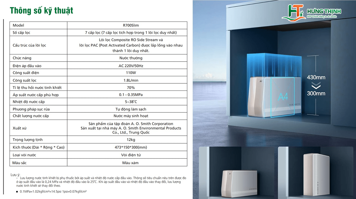 👉 Chính cấu trúc 7 cấp lọc tối ưu này là lý do A. O. Smith R700Slim vừa lọc sạch sâu, vừa tiết kiệm chi phí vận hành và được đánh giá cao trong phân khúc máy lọc nước RO cao cấp.