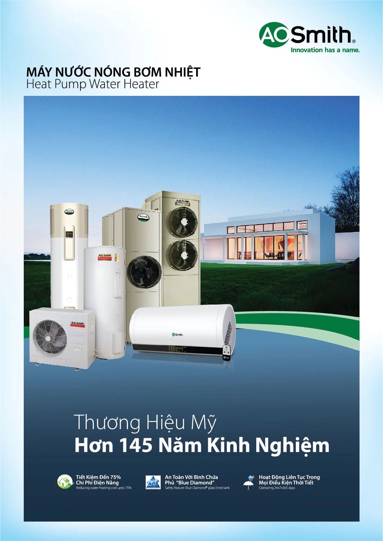 Sản phẩm được sản xuất bởi tập đoàn AO Smith, có hơn 145 năm kinh nghiệm cung cấp các sản phẩm khác nhau như máy lọc nước, Hệ thống lọc nước đầu nguồn, Heat Pump A.O. Smith, máy lọc không khí,… nên đảm bảo uy tín chất lượng tuyệt đối cho người sử dụng.